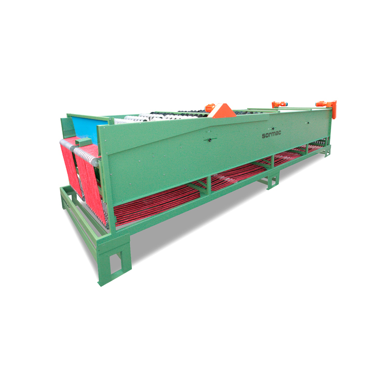 Clasifica los productos alargados como pepinos, pepinillos, zanahorias, productos encurtidos, según su diámetro para luego ser descargados mediante cintas o directamente a contenedores.