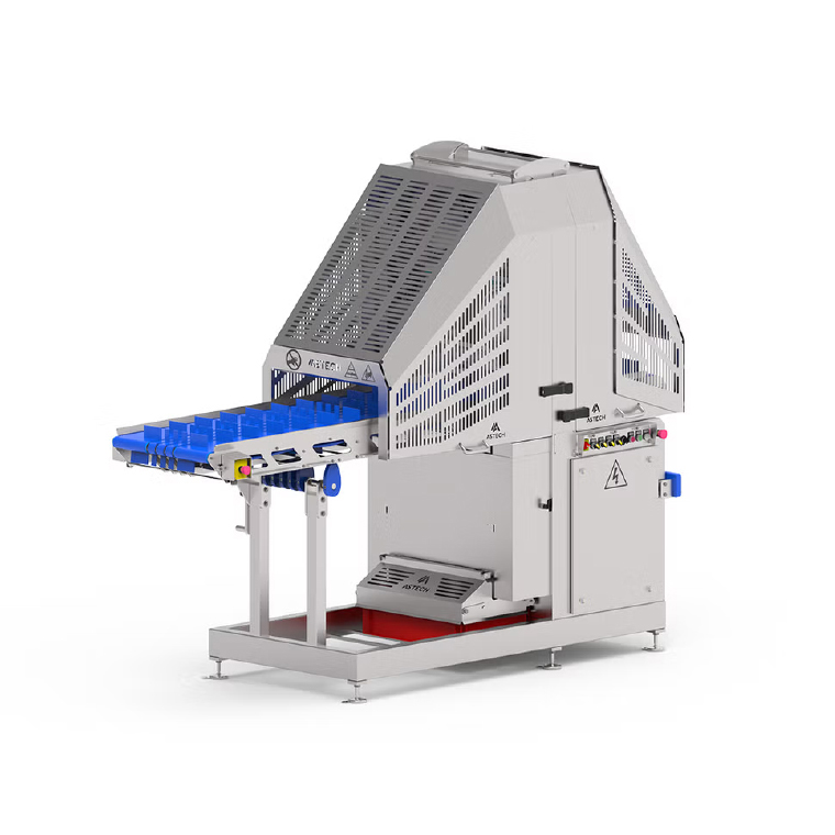 La cortadora CC2, por medio de una sierra cinta, permite realizar un corte longitudinal continuo (centrado o descentrado), a lo largo de un producto como, por ejemplo: patas de cerdo, bloques, entre otros, de forma totalmente segura.