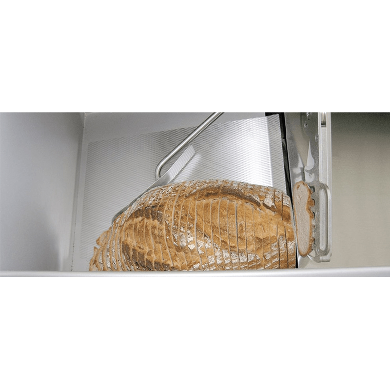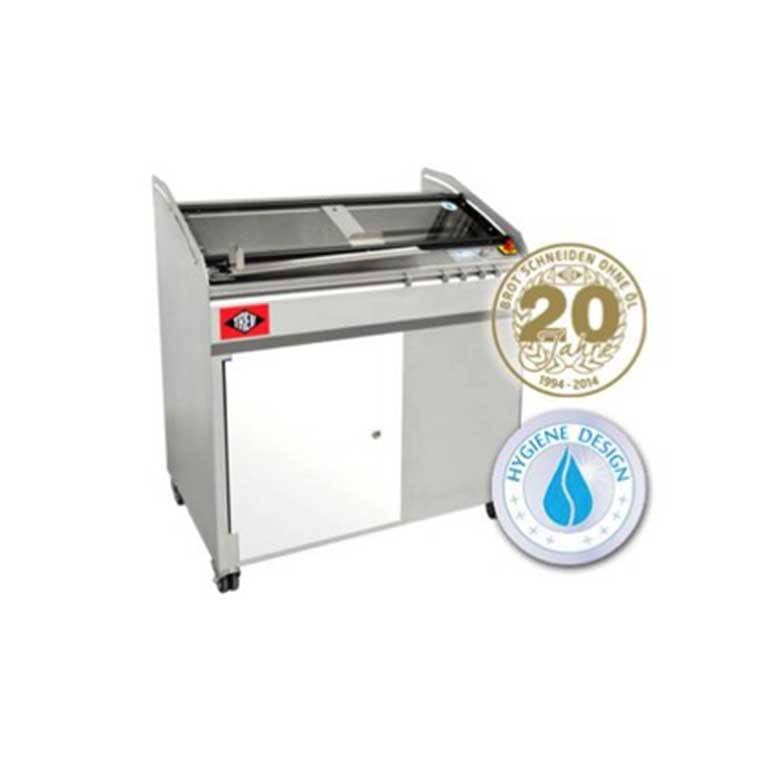 También con la máquina autoservicio DISKUS SB TREIF permanece fiel a su principio de cortar pan sin necesidad de engrasar. La DISKUS SB corta limpiamente todo tipo de pan. La cortadora de pan con certificación GS dispone de un sistema de seguridad fiable que evita cualquier riesgo de lesiones. En el área de autoservicio el cliente puede elegir pulsando un botón entre tres grosores de rebanada.