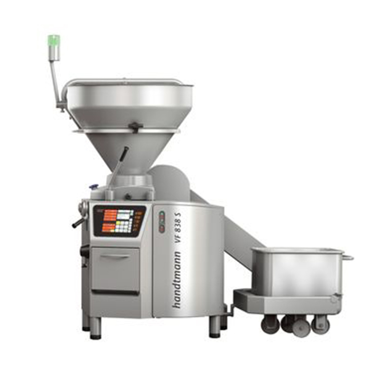 La embutidora VF 838S es perfecta para la producción de embutidos industriales, crudos y en barra, debido a su alta presión de llenado. En combinación con el sistema de trituradora en línea reduce los pasos del proceso y aumenta aún más la calidad del producto.