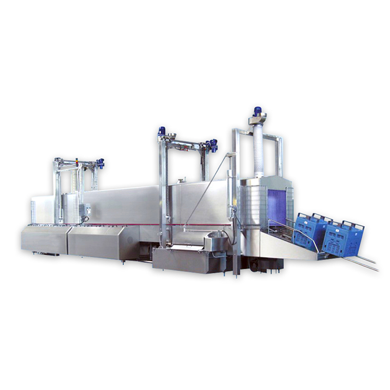 Esta lavadora de cajones posee sistemas automáticos y versátiles para el lavado de cajones, tapas, palets entre otros. Estos sistemas son adecuadas para todos los sectores del mercado, incluida la industria manzanera. Estos equipos están fabricados en acero inoxidable y poseen un filtro giratorio para eliminar continuamente los residuos más gruesos producidos por el lavado.
