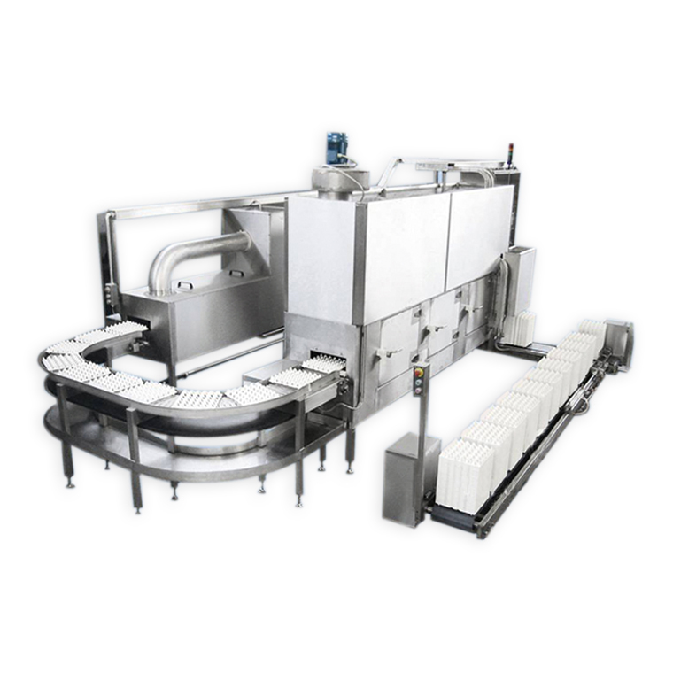 Sistemas automáticos para lavado y desinfección de perchas portahuevos, para el sector avícola, están disponibles con túnel en configuración de 1 a 3 pistas. Estos sistemas se personalizan según necesidades del cliente y siendo muy eficientes en la optimización de la producción.