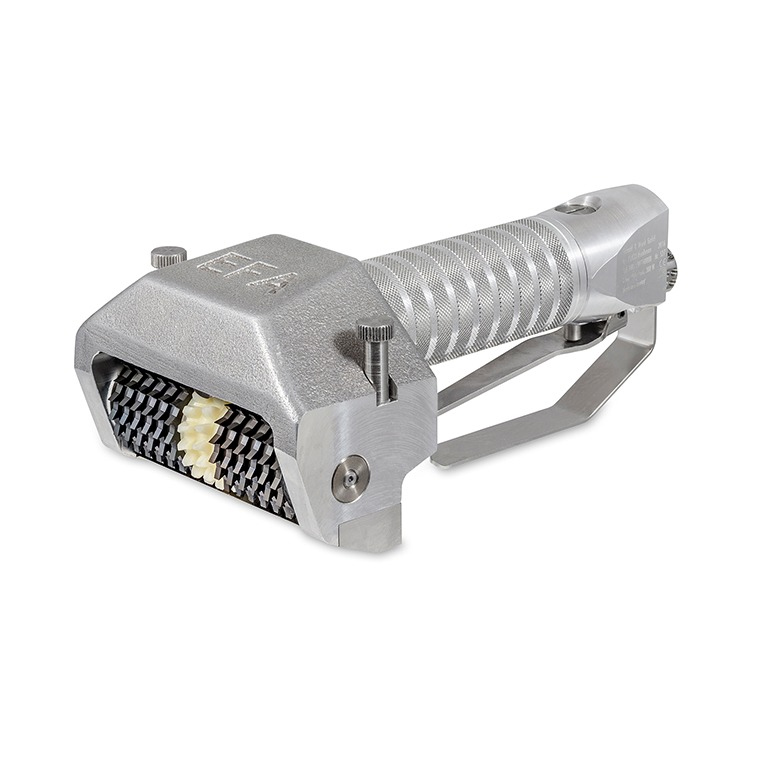 El descortezador manual EFA 900 está diseñado para procesar carne de cerdo, cortes de carne ahumada y seca. Este equipo toma la corteza de la carne y la arrastra por encima de la cuchilla. A su vez se compone de dos partes separadas en el centro por un engranaje helicoidal de tornillo sin fin.
