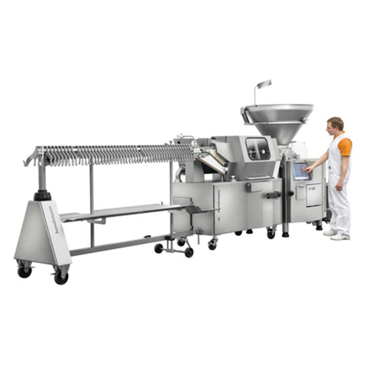 La línea PVLH 246 permite la producción automática de salchichas. Esta línea destaca por su tecnología moderna que incorpora una unidad de torsionado con revólver y tres embudos de torsión, lo que garantiza tiempos mínimos en el cambio de tripa ya sea de forma automática o manual.