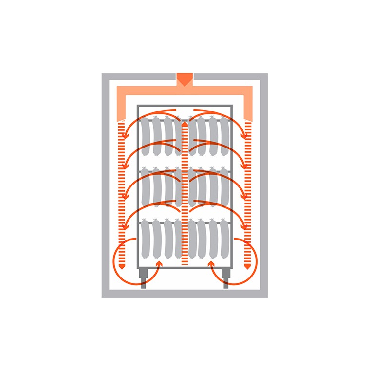 Los costos operativos se reducen al mínimo gracias al proceso patentado de cocción al vapor a baja presión sin ventiladores, en combinación con procesos de trabajo automatizados. El enfriamiento de los productos en el sistema cerrado, directamente después del tratamiento térmico, también asegura condiciones higiénicas ideales y aumenta la vida útil.
