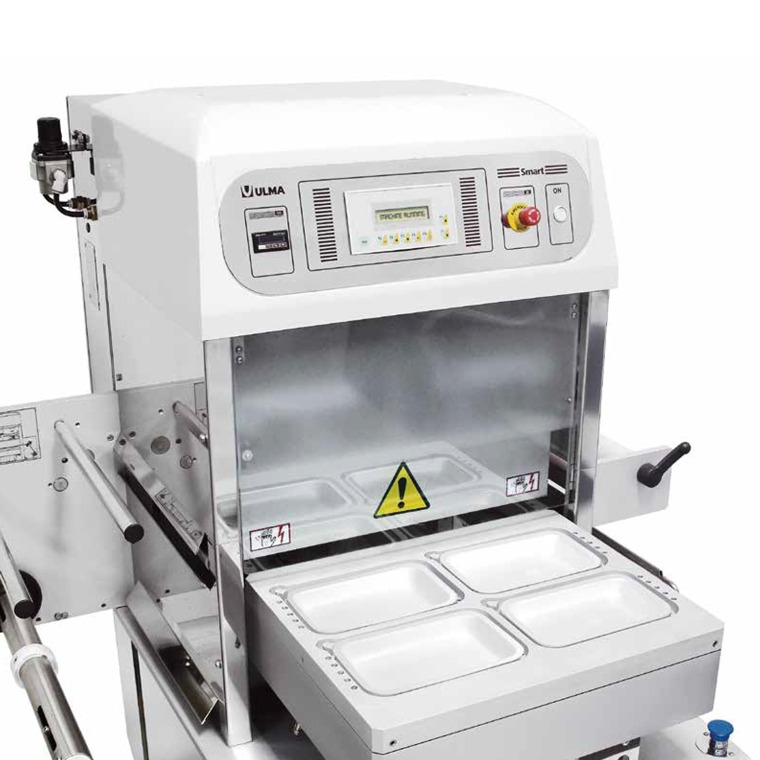 La máquina Smart 500 es una termoselladora semiautomática para envasado de productos alimenticios en atmósfera modificada o envasado al vacío, que se adapta a una amplia gama de bandejas y films según requerimientos de los productos.