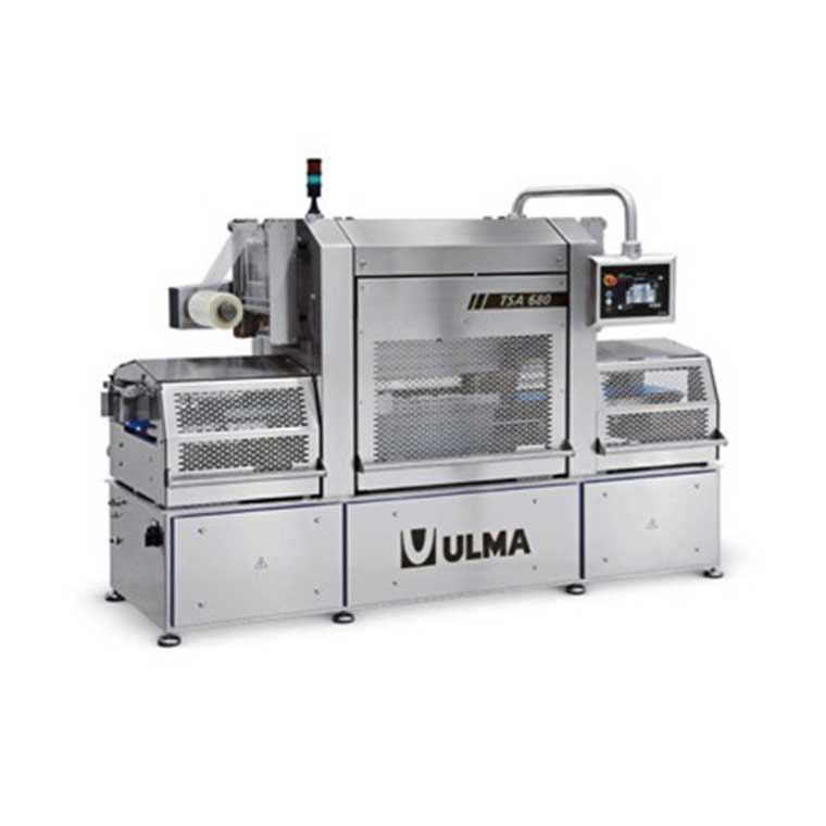 La máquina TSA 680 es una termoselladora automática, para todo tipo de bandejas prefabricadas de diferente composición. Este equipo se puede integraren líneas de producción medias – altas o en procesos que requieren de un control preciso del movimiento del transporte de bandejas.