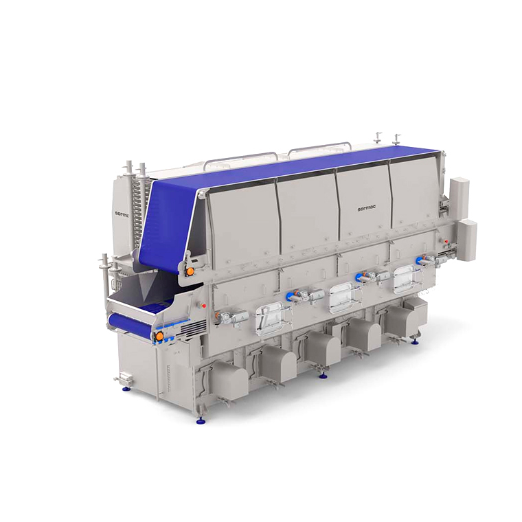 El túnel de secado por aire es ideal para verduras de hoja delicada, como la espinaca y los brotes tiernos, pero también para verduras como lechuga escarola. Durante el secado de estos productos el aire se enfría por la evaporación del agua super¬ficial del mismo.