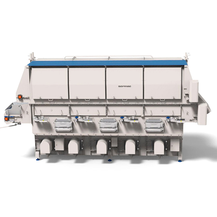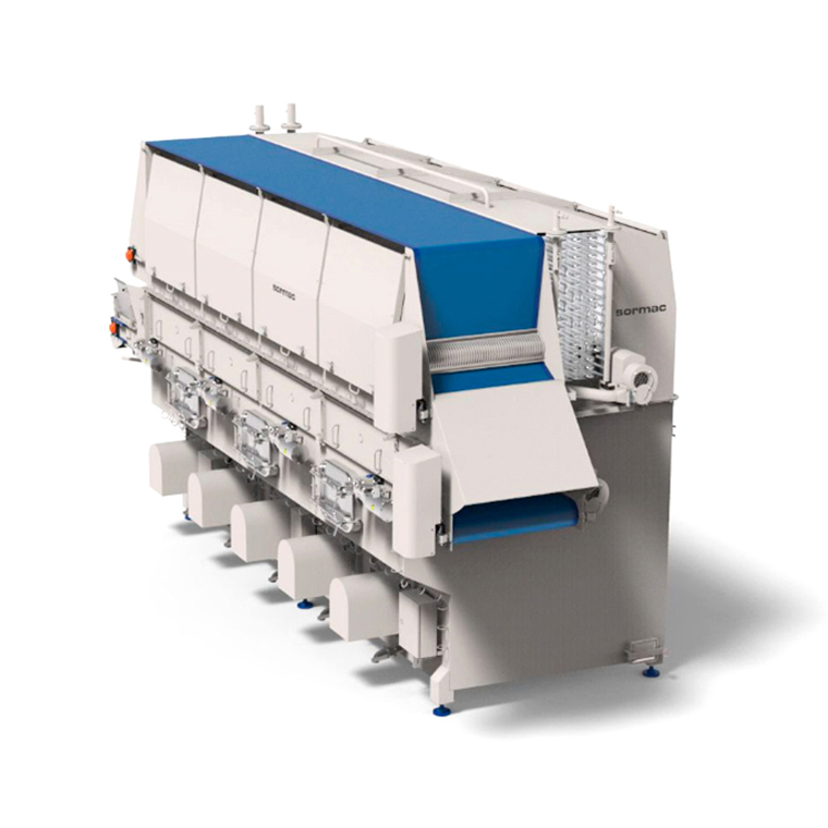 El túnel de secado por aire es ideal para verduras de hoja delicada, como la espinaca y los brotes tiernos, pero también para verduras como lechuga escarola. En el túnel de secado por aire se pueden alcanzar valores de humedad de menos del 2% y hasta el 0% en la super¬cie del producto.