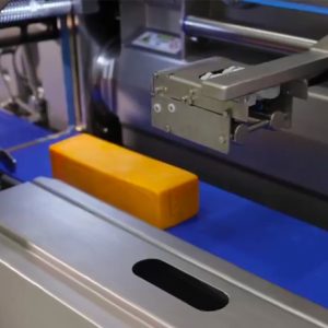 Porcionadora automática cortando quesos – Lácteos